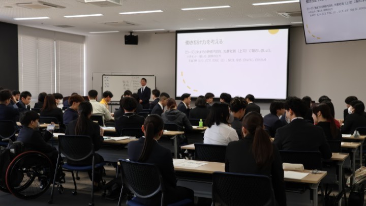 社会人としてのスタートにあたっての心構えや責任・役割について理解します。また、組織の一員としての意識を持ち、職場の上司、先輩等との関わりの中で、意欲をもって仕事を行っていくための基本的な知識や責任ある行動習慣を身につけます。