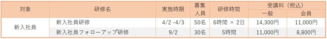 お申込みはこちら>> 新入社員研修 [4/2-4/3] | 新入社員フォローアップ研修 [9/2]